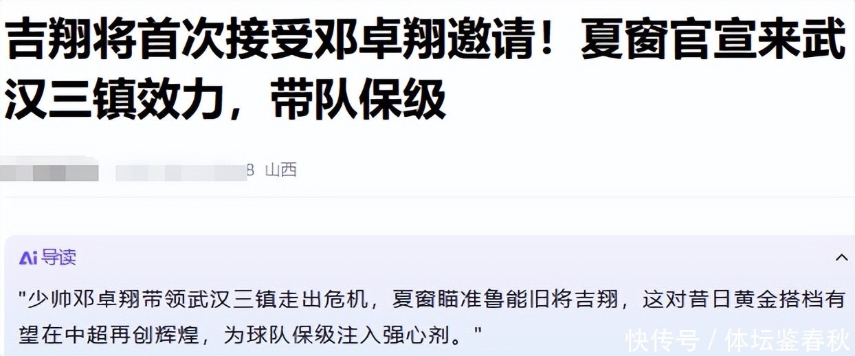而近日,据一家山西体育媒体报谈,为了进一步巩固武汉三镇队的全体实力,邓卓翔正在积极准备夏窗的引援使命,物色恰当的新援补强声势。前山东泰山的队长吉翔,也曾成为了武汉三镇队的要点引援想法。